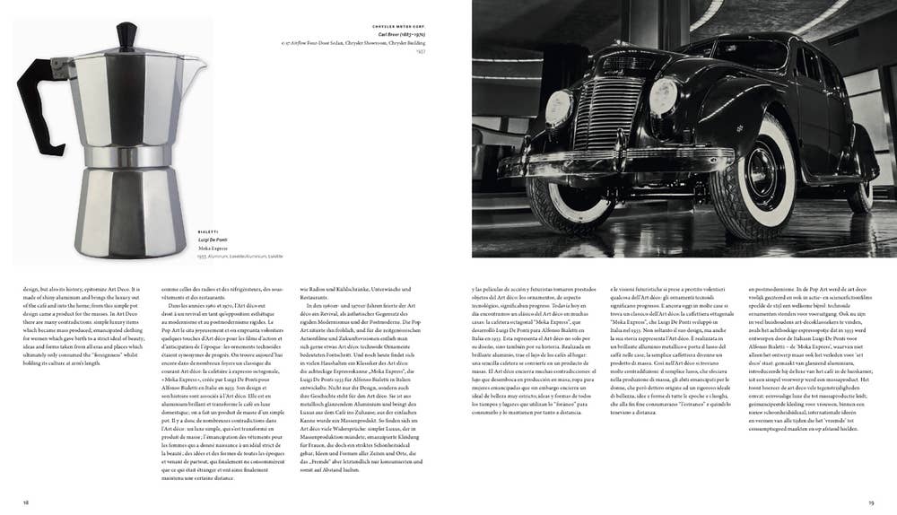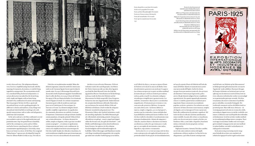 The Art Deco style, named after the International Exhibition of Decorative Arts, reached its peak in the 1920s. A new artistic language driven by a formidable vital impulse born of recent peace, left its mark on urban and domestic architecture, but also on all forms of design: furniture, mural painting, glassware, ceramics. This book offers a magnificently illustrated panorama of this ornamental aesthetic, which blend into the world's artistic landscape with materials as luxurious as lacquer, ivory or stingray. 280 pages