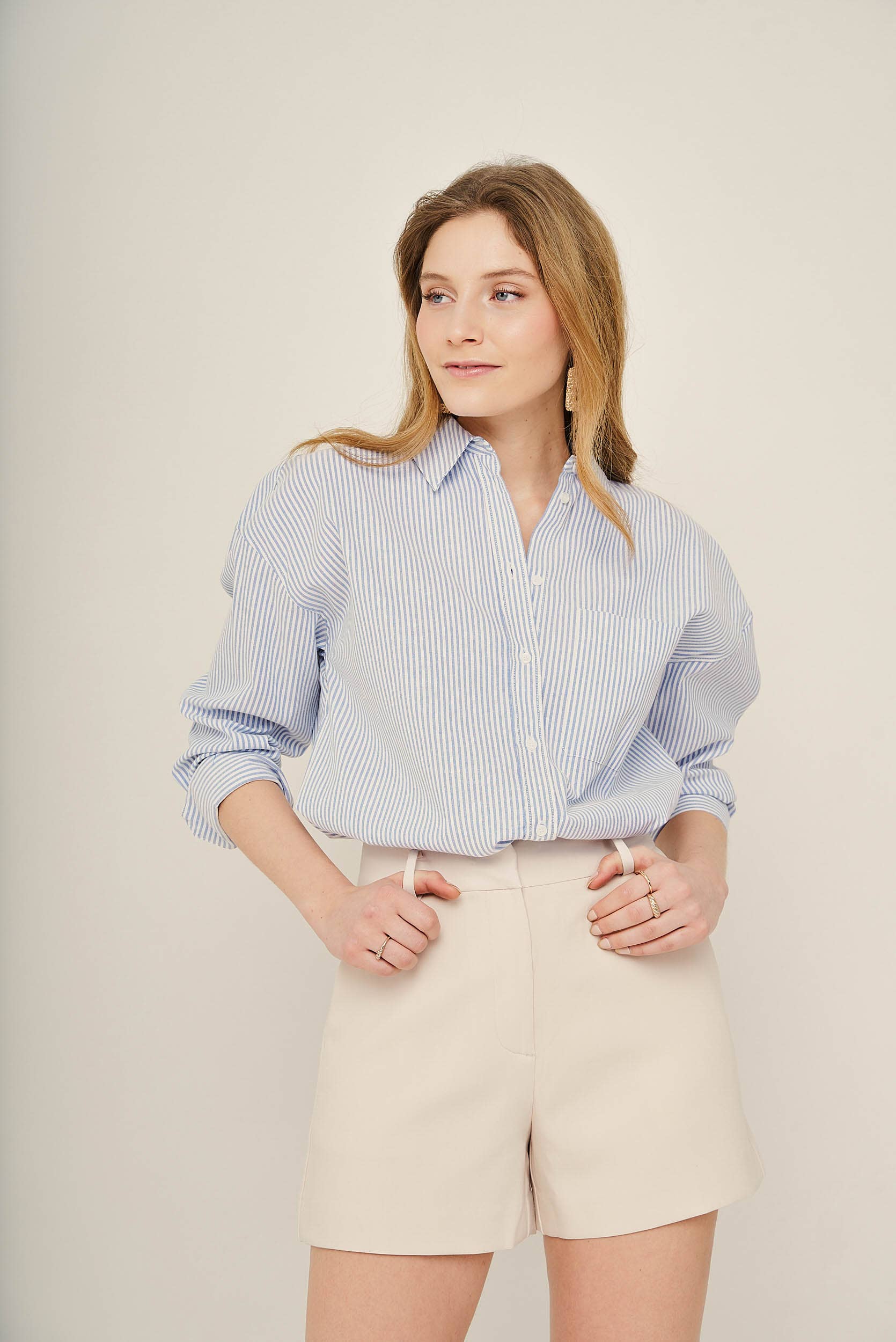 The Clementine shorts are made of a fluid fabric which means they don't stick to your thighs. The Clementine shorts are perfect with a big knit sweater, a nice pair of tights, and boots.