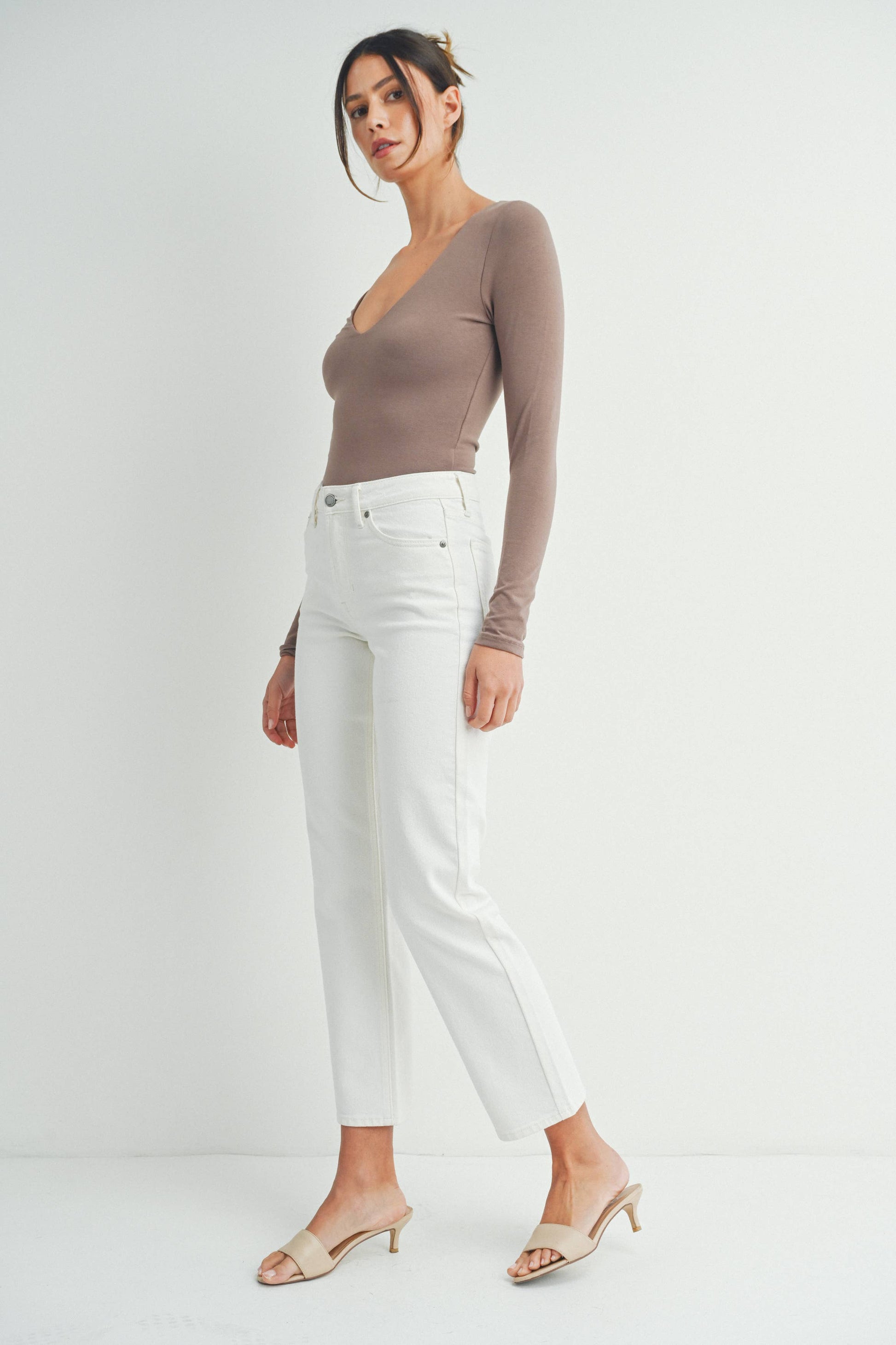 These Birch Jeans feature a clean, creme colored fabric with a straight-legged silhouette and neatly hemmed cuffs, offering a timeless and versatile addition to your wardrobe. Designed for a flattering fit, they provide both comfort and style, making them suitable for a variety of occasions from casual outings to more polished looks. The precise tailoring ensures durability and a crisp appearance, reflecting expert craftsmanship in denim wear.