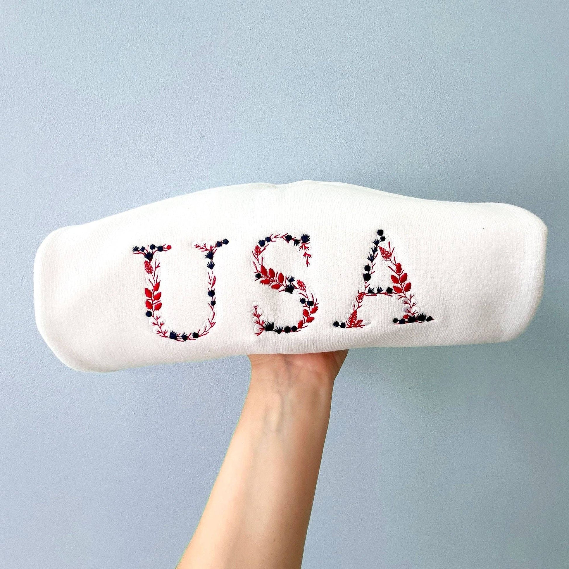 Celebrate your American pride with our Floral USA Embroidered Crewneck Sweatshirt! This cozy and stylish sweatshirt is perfect for the 4th of July and year-round wear. This super soft sweatshirt is a unisex fit, if you are looking for an oversized fit please size up!
