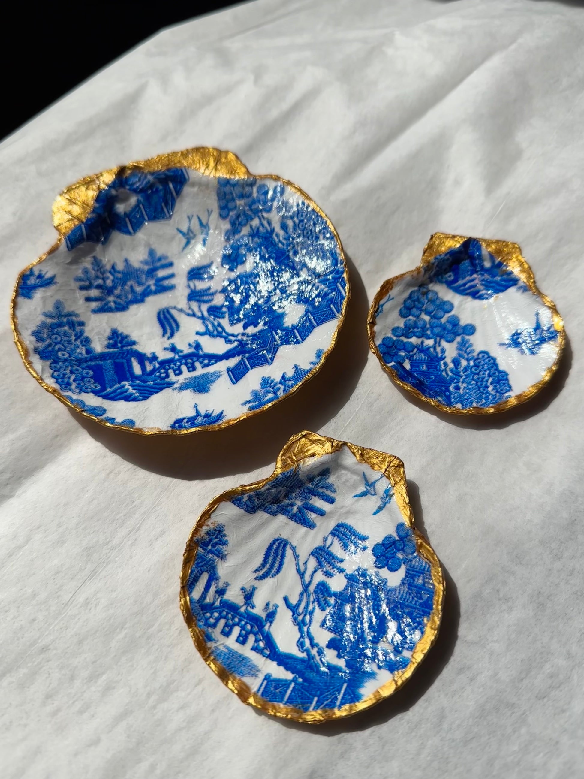 These seashells are transformed into artful treasures with unique printed patterns on the front and a luxurious gold finish on the back. Each piece is carefully handcrafted to create a polished, elegant look, making them perfect for decor, gifts, or collections. No two shells are exactly alike, blending natural beauty with artisanal charm.