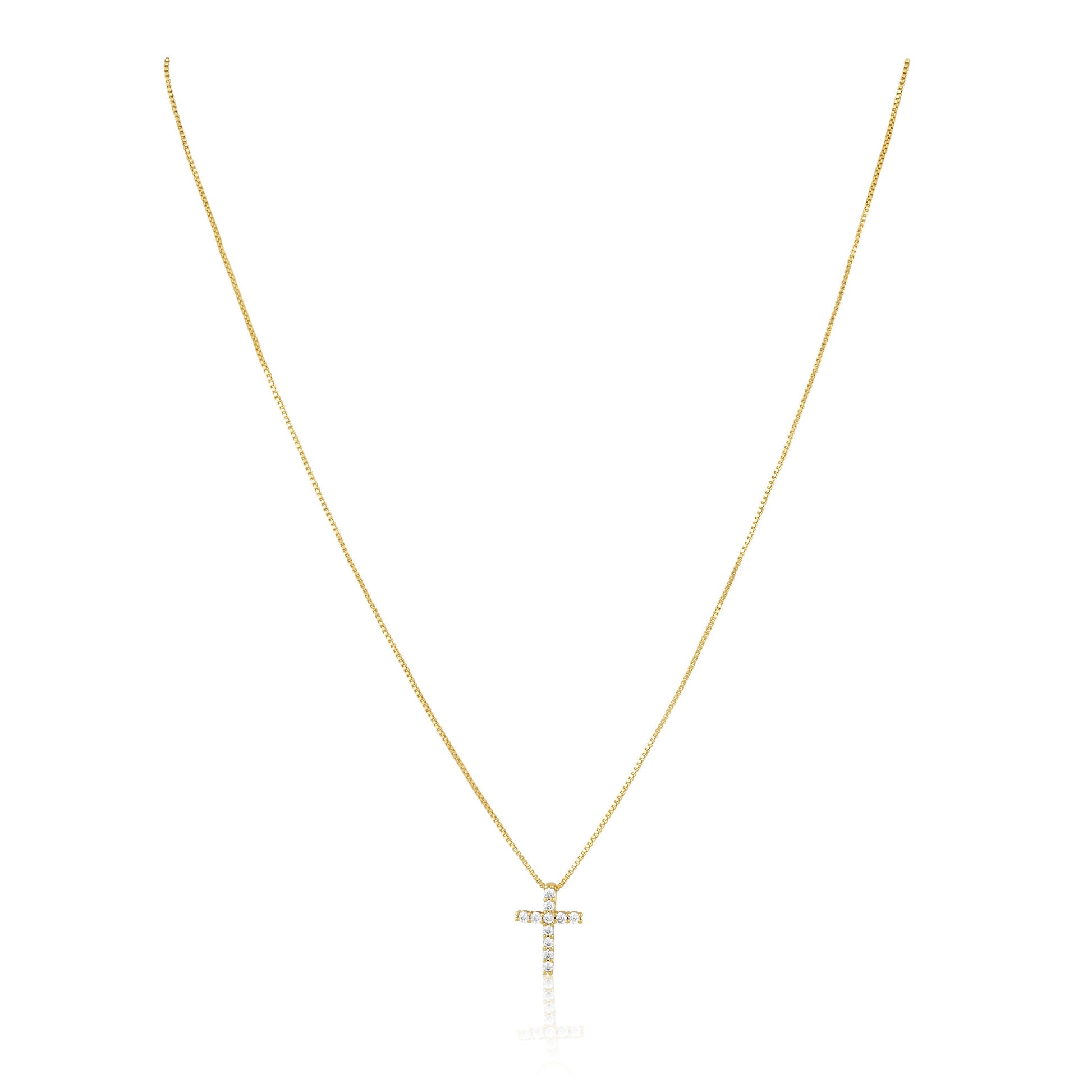 Experience divine elegance with the Raya CZ Cross. This stunning piece features a delicate cross, adorned with sparkling cz stones. Perfect for any occasion, this accessory adds a touch of sophistication to any outfit. Let this cross be a timeless symbol of your fashion-forward and refined taste.